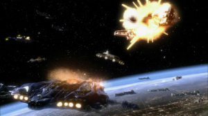 One of my favorite moments comes at the end of the episode – or, more accurately, after the episode has ended. McKay finally succeeds in tracking every Aurora class replicator vessel in the galaxy. As he and Sheppard look on, we see the ships flash up on the star map. BEEP-BEEP-BEEP-BEEP-BEEP-BEEP. Six in all. ”That’s not so bad,”says McKay. ”I guess the wraith have really taken a toll.” Suddenly, another eight BEEPS and the corresponding ships appear onscreen. Then, another fifteen leaves McKay and Sheppard staring, aghast. I was very specific that I wanted to fade out on an ominous sting, wait a beat, and then hear another eleven BEEPS punctuated by Rodney’s “Oh, crap.”