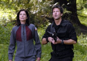 Girl power! A great episode that showed off two of our strong female leads. On the one hand, we have Teyla, the fearless warrior, who kicks ass and demonstrates the courage and poise of an experienced leader. On the other hand, we have Jennifer Keller, the young doctor who, overwhelmed and out of her element, still manages to step up and come through. What really struck me about this episode was how reversed the roles were behind the scenes. There was no way in hell Rachel was getting anywhere near that bridge, much less stepping on it (hell, I don’t blame her). Jewel, meanwhile, not only stepped onto the bridge, she dispensed with a stunt double and gamely walked across it herself.