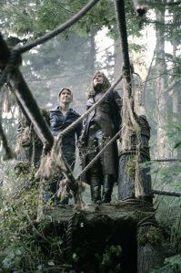 And, oh, that bridge. I recall Carl coming into my office one day, shaking his head, rueing the day he wrote it into the script. To quote from a past blog post on the infamous footbridge: “Carl envisioned a scene involving a rope bridge and, simple enough, the Art Department came up with a design, it was approved, the bridge was built – and then when we found out the cost, our eyes almost popped out of our skulls. As it turns out, it wasn’t the bridge that was so pricey but the added expense of paying security guards to stand watch, 24/7, to ensure no adventurous teens attempted to cross the damn thing while it was up. It was just one of many surprises that transformed this originally inexpensive episode into a $$$ spectacular.”