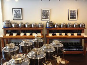 Opened in January of this year, Vancouver Olive Oil Company offers up a variety of high quality olive oils and balsamic vinegars from a number of different countries: Italian Favolosa, Spanish Manzanillo, olive oils perfumed with Persian Lime or Mushroom & Sage, Sicilian Lemon White Balsamic, and Espresso Dark Balsamic – to name just a few.