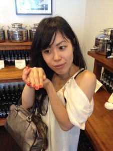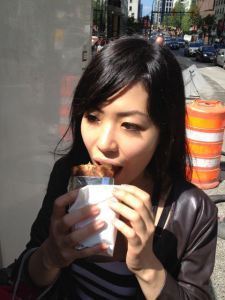 Akemi: I don’t know. Like a wine. (takes another sip – and makes another face)