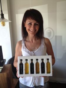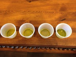 We started with the medium to robust olive oils and were surprised by the subtle, and sometimes not so subtle, distinctions between them. We were each offered samples in a small, paper cup and instructed to warm the oil by placing it between our cupped hands for thirty seconds to release the scent and flavors.