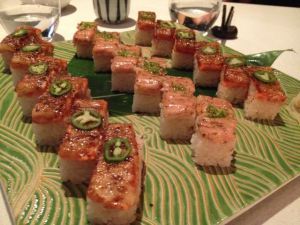 The Aburi Salmon Oshi Sushi – my favorite dish on the menu which, not surprisingly, turned out being Remi’s favorite. It packs a delightful jalapeno/cracked black pepper kick.