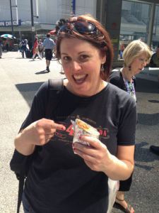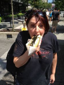 First stop: Japadog for – what else? – a Japanese hot dog. Kurobuta pork with terimayo and dried seaweed.