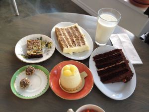 Dessert. I was a big fan of the carrot cake. Akemi loved the pistachio brownie. The goat cheese cheesecake was good but Maryanne preferred the chocolate layer cake.