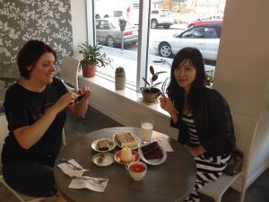 Maryanne and Akemi ready for dessert at Cadeaux Bakery!