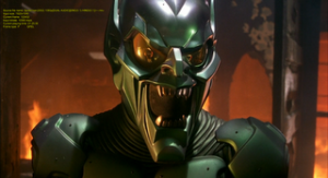 Anyway, yep, Harry go insane. He makes his own supervillain outfit, jump on experimental glider, and go on killing spree – first military officials who pressure him, den board of his company, Oscorp, when dey try to force him out. He get nickname…De Green Goblin!