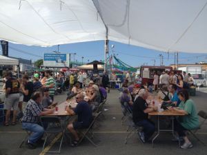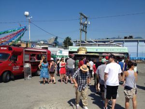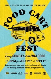 Today, after hitting the Sunday farmer’s market (not to be confused with the Saturday farmer’s market which we also make a point of attending), we headed on over to the Waldorf Hotel for Food Cart Fest. The weekly event started on July 29th and is continuing, every Sunday, until September 2nd. It’s a chance to check out a bunch of Vancouver’s best food trucks – along with a few other surprises.