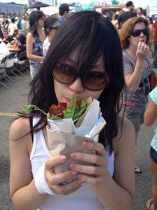 Akemi enjoys her tandoori chicken wrap from Soho Road.