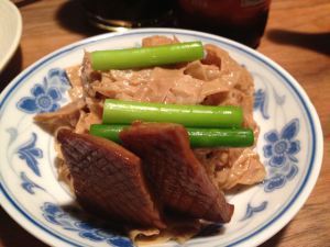 Bean curd skin with king oyster mushrooms and truffle vinaigrette. Love the texture of bean curd skin.