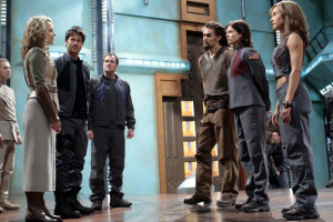 Great. The Ancients were about as successful at holding on to Atlantis as they were the first time they had it. So now, it’s up to Sheppard and co. to retake the city from Asuran control and, oh yeah, help out a trapped O’Neill and Woolsey who are off causing all sorts of trouble of their own. An episode with a nice mix of action, humor, character moments, mythology, twists and turns – an nice, satisfying pay-off to part one’s set-up. And while things end happily enough as things return to normal for our gang on Atlantis, one big question lingers: Where the hell is that Ancient ship, the Tria? Well, given the fact that we don’t hear mention of it again after this episode, take your pick: a) It was destroyed by the Asurans when they took Atlantis, b) It was hidden by the Ancients – hidden so well, in fact, that no one has been able to find it, c) It was sent off on some unknown mission (by either the Ancients or the Asurans who claimed the ship after conquering the Ancients) and was subsequently lost, d) Add it to the pile of cool technology gathering dust at Area 52 like the goa’uld healing device and the time traveling puddle jumper.