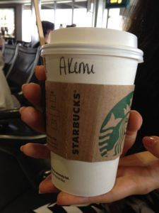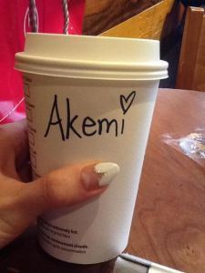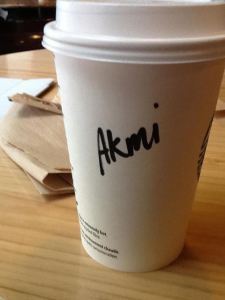 The Starbucks in the San Diego airport finally succeeds where all other Starbucks have failed – in correctly guessing the spelling of Akemi’s name!