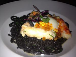 Squid ink taglioni with Alaskan King Crab.