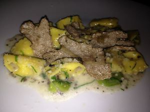 Buffalo mozzarella and truffle agnolotti.
