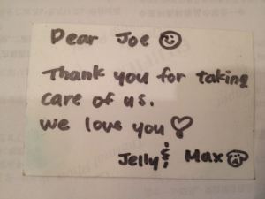 I remember stepping up to the clinic’s cashier one afternoon, disheartened and weary, reaching into my wallet for my credit card, and finding the above photograph. Akemi had somehow slipped it in the previous night. It’s a picture of my two eldest pugs, Maximus on the left and Jelly on the right. Jelly had gone through a very rough time of her own the previous year when the effects of her hip dysplasia finally caught up with her. Unable to stand, no longer capable of supporting herself on her rear legs, Jelly was in very bad shape. But I refused to give up on her. She had spinal surgery to correct a bulging disc, and then a series of stem cell transplants (via the folks at Vet Stem). She battled back and finally regained use of her hindquarters. Wobbly and weak, but mobile nevertheless. I was hoping Maximus could pull off a miracle of his own but, alas, it wasn’t to be. My boy passed away in late January of this year and, as a tribute to him, he will forever grace the banner of this blog, overseeing these daily entries from up high.