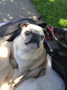 I know. She looks ridiculous. But given her hip problems, this is the only way she gets out to take in some of the sights the more mobile Bubba and Lulu get to check out.