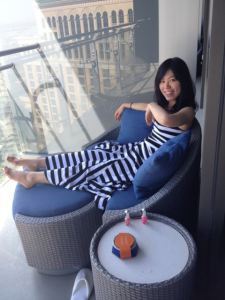 This is the first and probably the last time I’ll be staying at the Cosmopolitan Hotel in Las Vegas. In addition to the trifling annoyances (in-room safe not working, housekeeping skipping our room today, being told I could leave my valuables at the front desk only to be told by the front desk that I had to leave them with the Bell Captain only to be told by the Bell Captain that they had to be in an enclosed piece of luggage (forcing me to lug my laptop around with me all afternoon) only to later be told by someone else at the front desk that I could leave my valuables at the front desk, etc.) is the one big annoyance of being charged for in-room wifi. It feels so nickel and dime, well beneath a hotel of its supposed stature. Next thing you know, one of maids is going to stop by to ask if I’d like to pitch in for fellow employee Anita’s going away party. Akemi, on the other hand, likes the Cosmo just fine. She finds the bed incredibly comfy (I have to agree) and loves the patio…