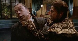 Meanwhile, Shadow and Khan Jr. still fighting. Crazy flying magik dagger make another appearance. It being controlled by Khan Jr. but Shadow use his powerz and gain control of it and kill Khan Jr. Which leave monster scratching his head. If Shadow able to take control of dagger, dat mean HIS mind control stronger den Khan Jr.’s. BUT earlier in movie, Shadow not able to control Margo’s mind but Khan Jr. able to do so no problem. Dis not make sense. Why?