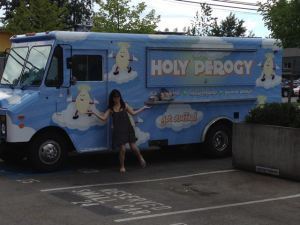 Finally – received a text message from my buddy, Ivon, the other day. “Perogie food truck,”he wrote. ”1o different kinds like “Thai curry” and “classic”. That’s a money maker!” and “It would rule the food truck wars.” ”Holy Perogy,”I texted back. ”Love the name,”he replied. “No,”I texted back. ”That’s the name of the Perogie food truck in Vancouver. It exists.”