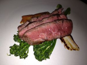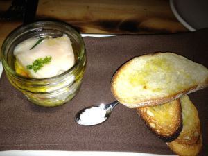 Canned Tuna. No, really. The tuna is poached, then served up – canned – with a pinch of maldon salt and toast. Sprinkle the salt on top of the tuna, mix, and – bon appetit. Actually, it was better then bon. It was one of the best dishes of the night. As someone who has always considered cooked tuna inferior to raw, I was pleasantly surprised. Very tasty with a texture akin to a fine pate.