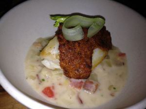 Crispy chorizo-topped halibut on clam chowder. This one had a nice smoky kick compliments of the chorizo, and the halibut (my least favorite fish) was moist and perfectly prepared.