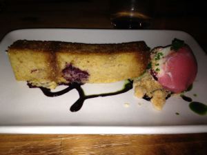 The bread pudding with vanilla and rhubarb ice cream. The bread pudding was unlike any bread pudding I’ve tried before, both in presentation and taste. It was actually very good! The rhubarb component offered a tart contrast to the sweetness of the pudding – if you like that sort of thing.