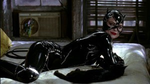 Movie start wit baby being abandoned in Gotham sewerz. He grow up to be…arch villain Penguin! Meanwhile, powerful bizness man plotting to screw city. He be…arch villain Max Shrek! But his mousey assistant find out about his planz and, in one of moviez many stoopid scenez, she tell him she know everyting. So he trow her out window but she survive and become…arch villain Catwoman!