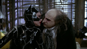 Batman Returns remind monster of solid gold eggz Big Bird get by mail order. Nice to look at but empty and when send complaint, company stop taking your callz and it all end wit director filing restraning order against you. Dis movie also like Grover at prom nite. All style, no substance, some pleather, and night end wit someone face down in pool. Me know, me know. People will say: “Come on, monster. Just enjoy movie for what it is!”. But monster not understood why me have to settle for lazy skript, espeshully when so much effort go into rest of film. It suggest people who make movie just not care very much – about skript, about audience and, most important of all, about monster. And dis hurt monster’s feelingz and make him want to cry. And punch someone. And if can’t punch someone, shitty review de next best ting!