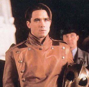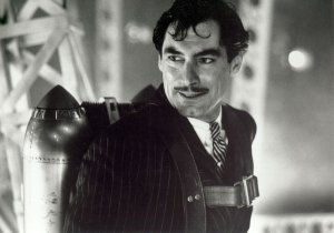 Zzzzzz. Snort. Hunh? Me awake! Sorry. Monster up all night trying to finish Rocketeer for todayz review. Movie is trowback to old cereals from de 30′s and 40′s your grandpa used to love. Of course dis be same guy who can watch construction AAAALL AFTERNOON so dat not saying much. At times, Rocketeer capture dat old timey spirit with beootiful updated costumez and special effekts – but same seventy year old musty script. De only interesting charakter in dis movie is de villain. Not de MOST interesting. De ONLY interesting one.