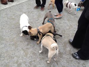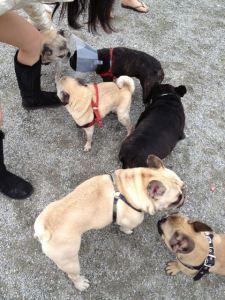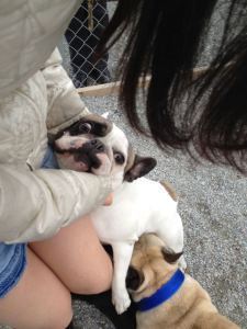 Whereas most adults my age are either dropping their kids off at school or picking them up from school or buying them clothes and toys, or attending their various extracurricular activities, I’m dropping my dogs off at doggy daycare or picking them up from doggy daycare or purchasing them leashes and toys, or attending various pooch-related functions. Like this past weekend, for instance, when we attended back to back dog-themed event, the first for French Bulldogs, the second for Pugs.