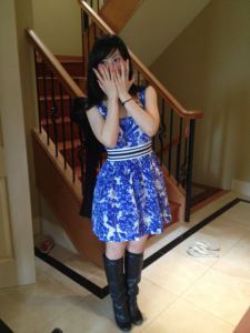 Speaking of blue, check out Akemi’s new outfit, a recent purchase on the heels of my assuming the position of Fashion Consultant for Akemi Aota Enterprises. I’m also going to go ahead and take credit for this -
