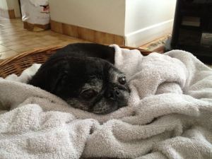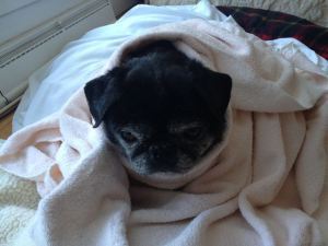 A post-bath Maximus just chillin'. Literally.
