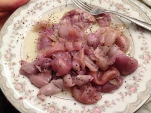 I haven't had these in years and years. I always assumed they were bitter onions but my sister informs me they're hyacinth bulbs!