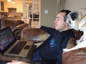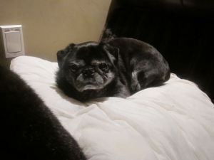 No discernible change in the condition of my pug, Maximus. He's not eating and has been extremely low-energy (as opposed to his standard low-energy), but I'm heartened by the fact he is drinking water and perked up considerably this afternoon when some friends dropped by the house today with their kids. Maximus loves children and the second those boys were in the door, he was up on his paws, sniffing, tail wagging. I'm taking him to the vet for a follow-up visit on Monday and, as I write this, am on hold with Air Canada as I'm considering bringing him along to Montreal for the holidays. The trip shouldn't be too stressful for him since he won't be flying cargo but, if I can swing it, traveling as my carry-on. He's by far the calmest of my dogs when it comes to traveling so hopefully this will prove a viable option should he not rebound from this recent downturn.