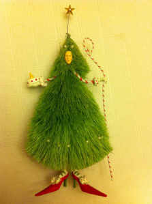 Yesterday, I asked you all to send in pics and links to your ugliest Christmas ornaments. I kicked things off with four of my own. I thought they were mighty hideous – but, as it turns out, downright resplendent in comparison to the entry my lil sis sent in. Feast your eyes on THIS -