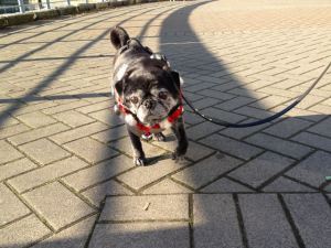 Given the fact that the prognosis isn't good for my pug, Maximus, we've decided to make the most of his remaining days. And so, this afternoon, taking advantage of a rare sunny day, we took him out for a walk along the seawall.