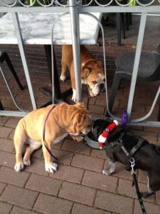 Making new friends. Although interested in other dogs, Maximus is more of a people dog and especially loves kids.