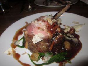 Plate #5: Veal rack with onions in a red wine reduction, spinach, Hunter Sauce and shaved white truffles.