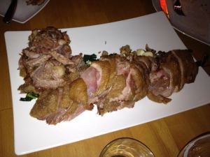 The crispy duck! Delicious but by the time we got it, we were stuffed!