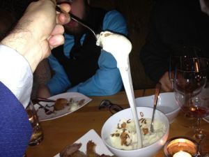 Ted shaved two different white truffles onto the risotto. Denise and I both preferred the lighter version for its more pronounced flavor.