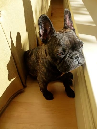 Lulu also enjoys the sun, squeezing in between the couch and the window so she can check out the outside happenings.
