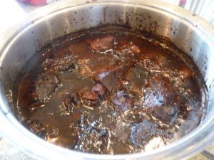 Pictured above is the braised meat trio I made a few weeks back for football Sunday – because, of course, nothing says football like ox-tail, veal cheeks, and short ribs. My variation of the recipe calls for an entire bottle of port, reduced by half, as the braising liquid. After eight hours of slow-cooking, the meat is fall-off-the-bone tender.