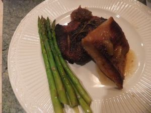 I followed the same preparation as the first dish, dusting with flour and browning, then add some fresh tarragon and a veal demi-glace. I allow that to cook down for five minutes, then serve. This was our favorite of the trio. Tarragon lends it a wonderful sweetness.