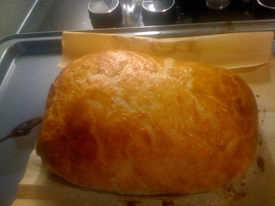 So, Akemi and I watch a lot of the cooking shows – Top Chef, Iron Chef, Chopped – but her favorite remains Hell's Kitchen. So much so that it inspired her attempt one of the Hell's Kitchen menu mainstays. Nope, not the risotto or something as simple as scallops. She tried her hand at the far more challenging Beef Wellington. How'd she do? Well…