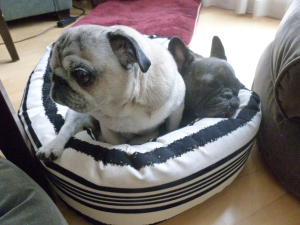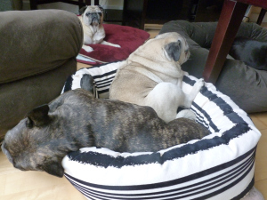 August 23, 2011: Lou and Hugo together at last! Doggy R&R! The Weird Food Purchase of the Day: Deep-Fried Jos Louis!!