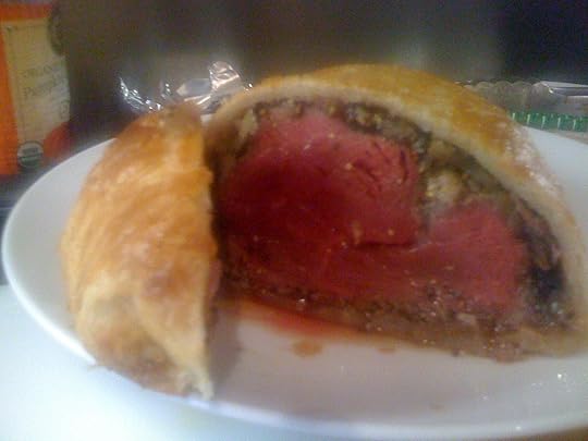 So, Akemi and I watch a lot of the cooking shows – Top Chef, Iron Chef, Chopped – but her favorite remains Hell's Kitchen. So much so that it inspired her attempt one of the Hell's Kitchen menu mainstays. Nope, not the risotto or something as simple as scallops. She tried her hand at the far more challenging Beef Wellington. How'd she do? Well…