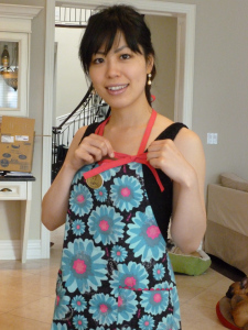 Let's end today's entry on a high note – Akemi in the new apron her mom sent her from Japan.