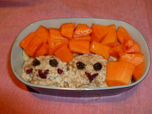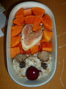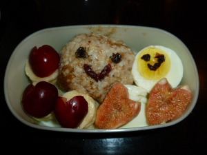 Note the heart-shaped figs, my name in chocolate on top, and the oatmeal wink. Totemo jozu as the Japanese would say!