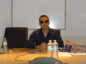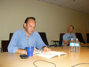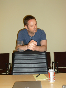 Steve demonstrates patience and perseverance, coming in to the conference and settling in, fully prepared to work on his episode – only to have us called away to deal with prep-related business. Over and over and over again. Despite it all, he's all smiles. Understanding or one more interruption away from a laptop-wielding bludgeoning spree?