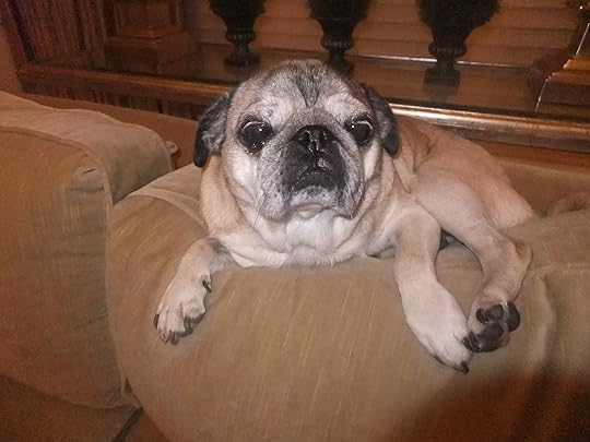 Lulu's "Whatcha lookin' at?" look. My response: "The goop in your left eye."